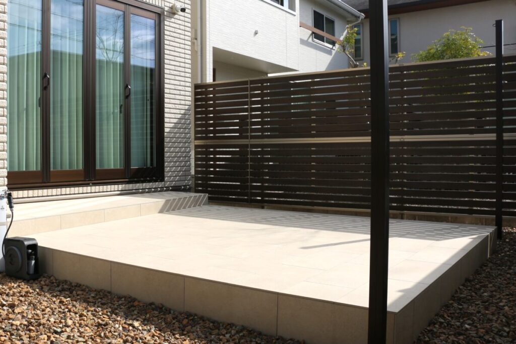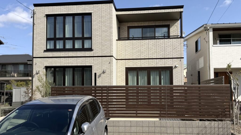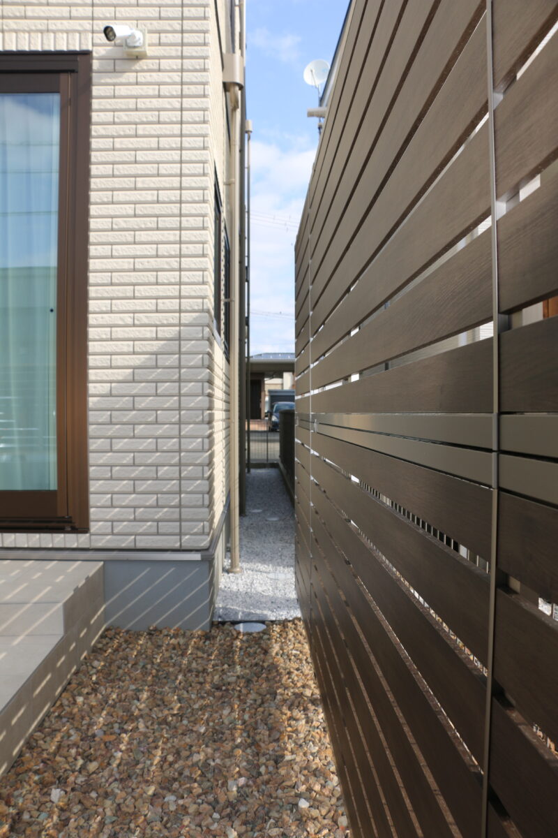 こちらのフェンスは両面木調職にすることで、お家側からの見た目も