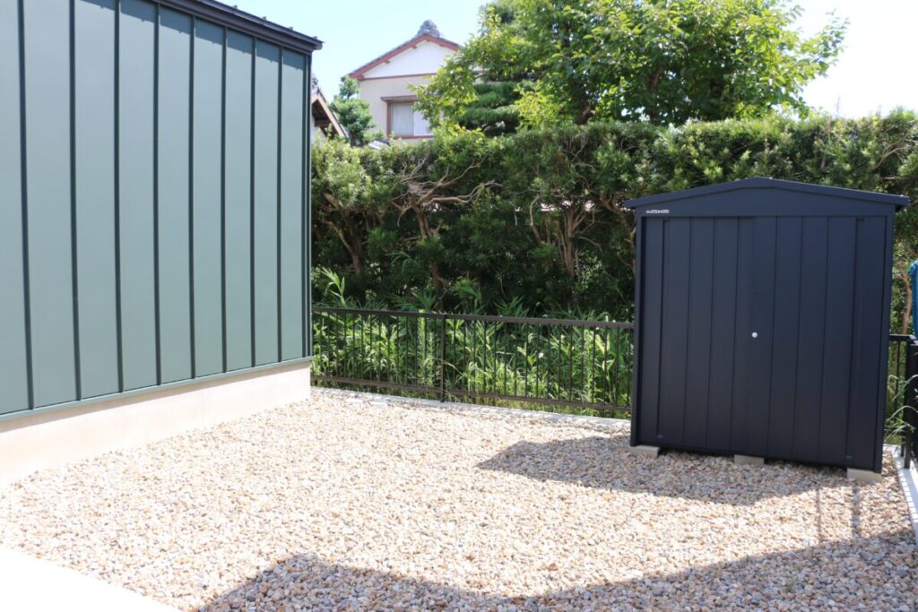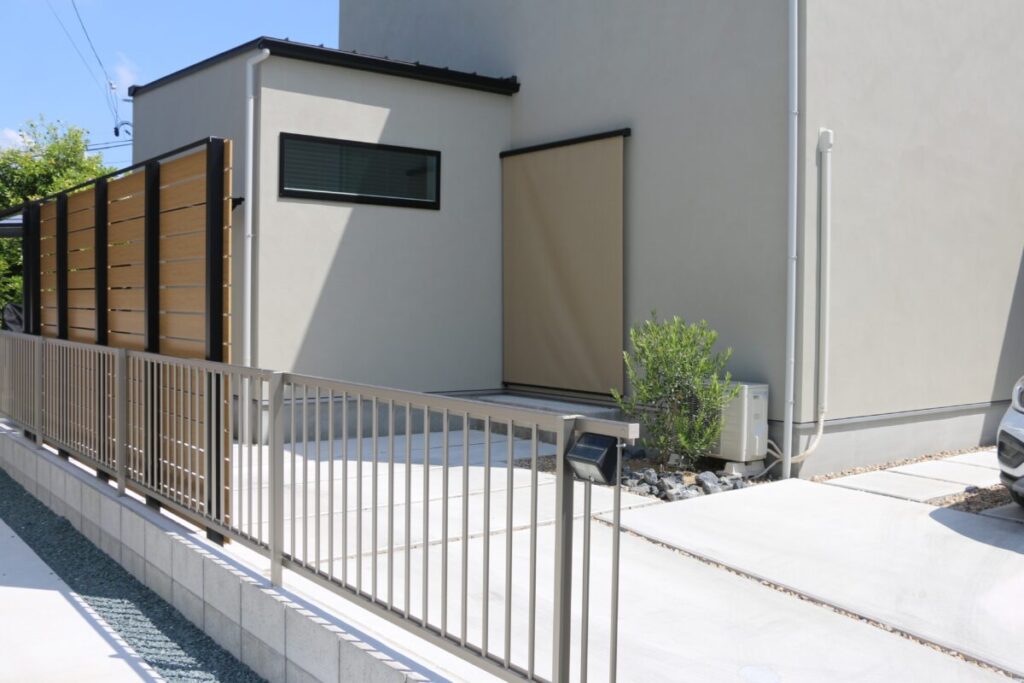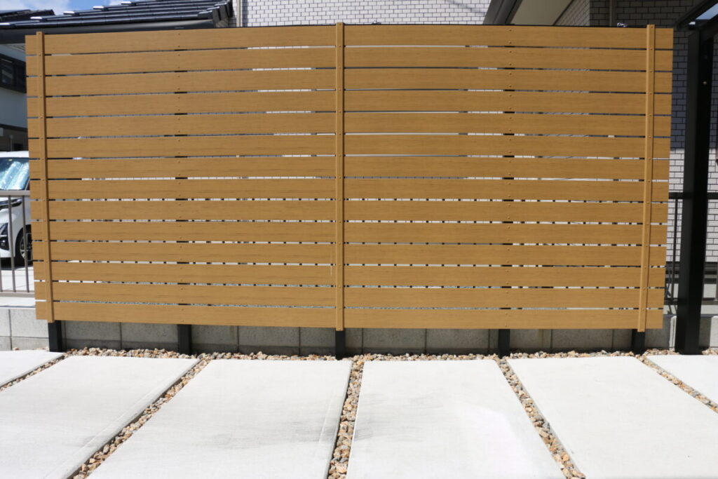 隣地からの目線を遮るためリビングの窓の先にはBウッドフェンスを設置