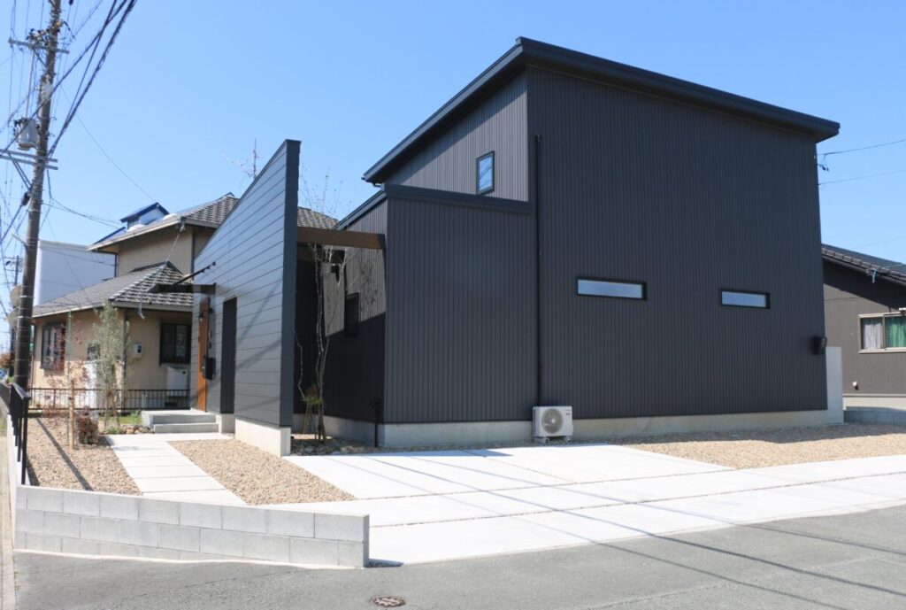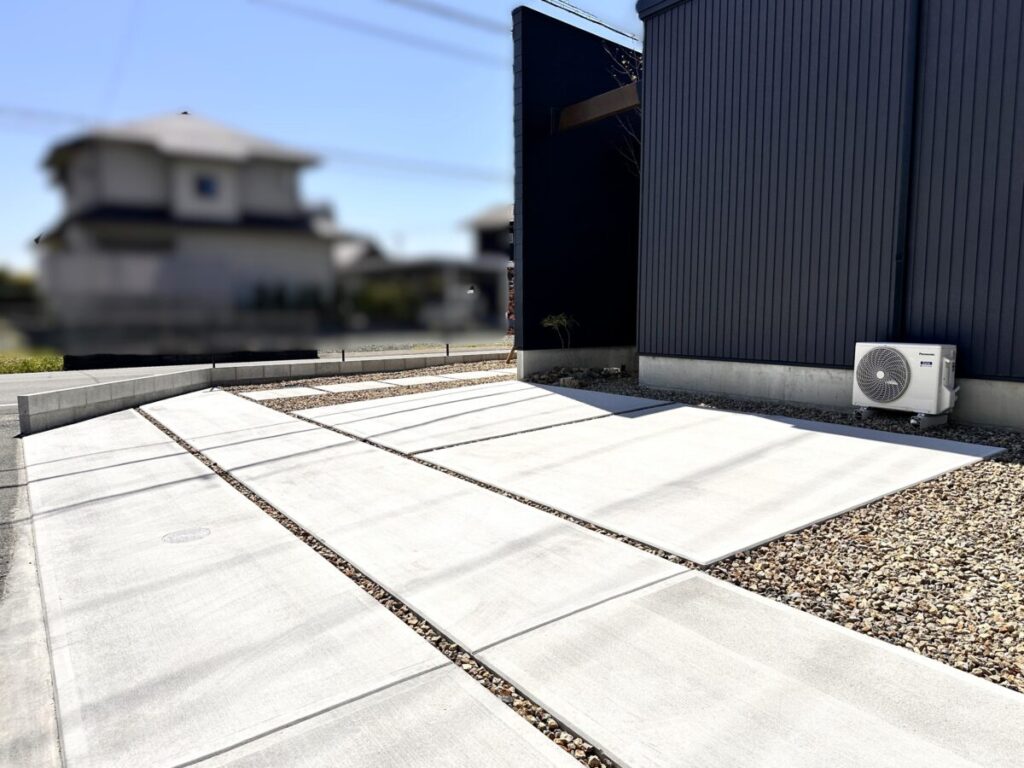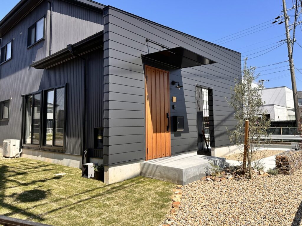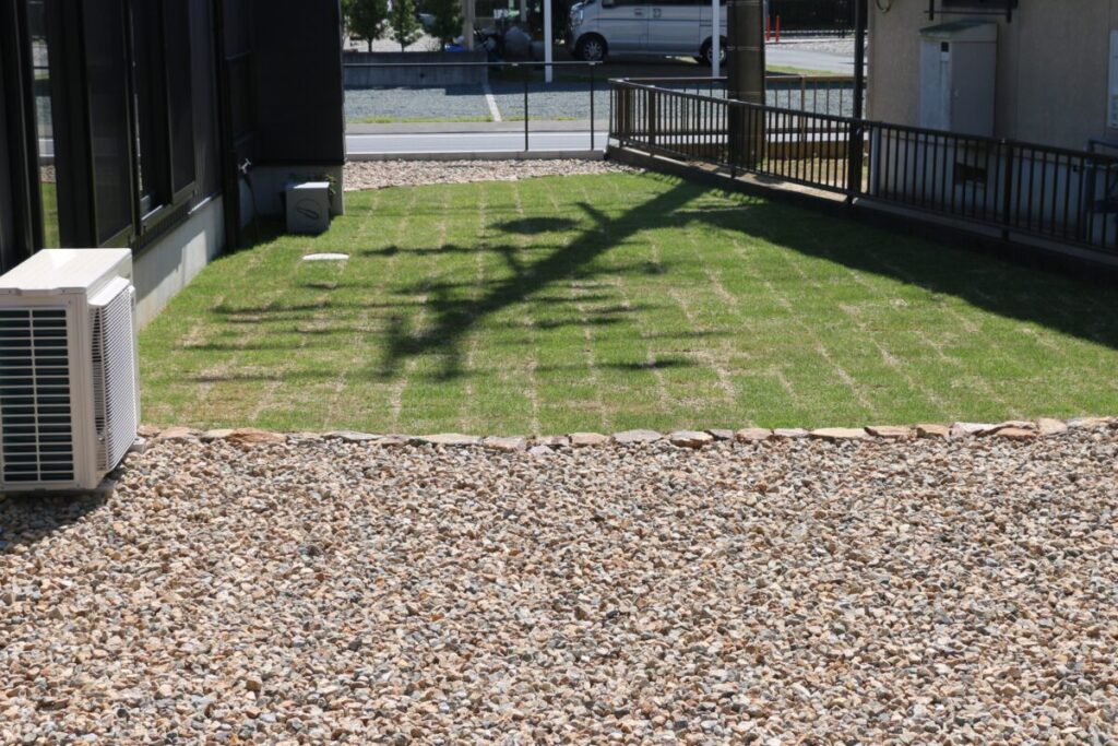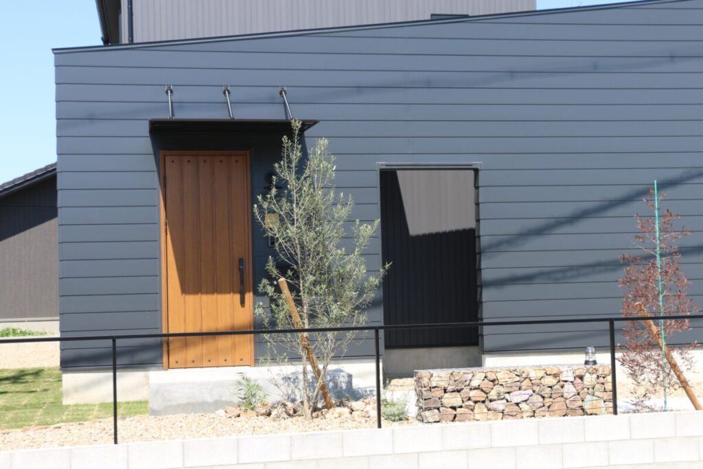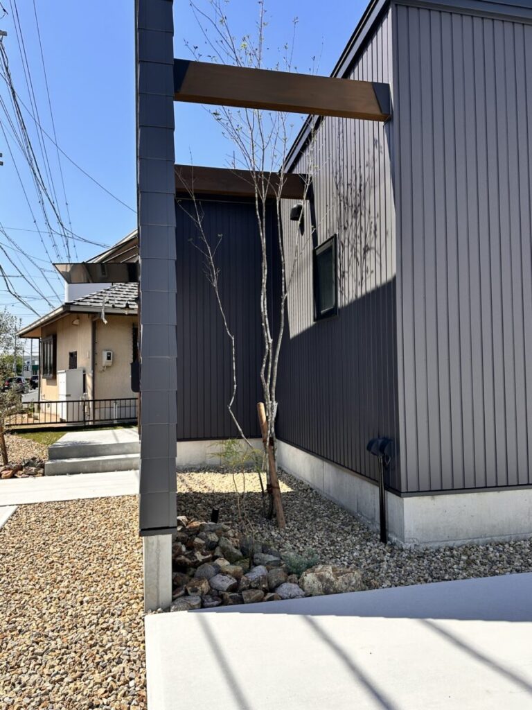 建物の落ち着いた外観に合わせて、自然の質感がやさしく馴染むナチュラルテイストのお庭をつくりました。 アプローチには大判のコンクリートをゆったりと配置し、そのまわりを明るいチャート石で包むことで、足元から軽やかな雰囲気が広がるようにデザインしています。 砂利の柔らかな色味が、木製の玄関ドアや外壁の深い色を引き立て、 全体にあたたかい印象を添えてくれます。植栽は、樹形のきれいな木を中心に選び、風に揺れる葉の動きが玄関まわりに自然なリズムを生み出すよう配置。 季節ごとに少しずつ変わる表情が、暮らしにやさしい彩りを与えてくれます。 シンプルな中に深みのある外構になりました。